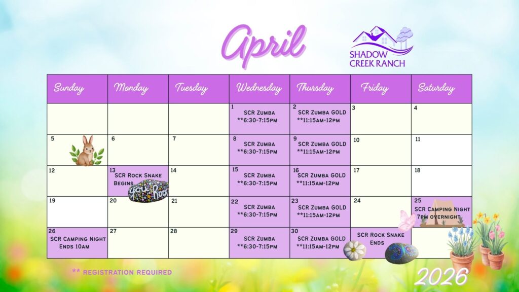 - Register for ZUMBA (Wednesdays): https://www.eventbrite.com/e/scr-zumba-classes-april-tickets-1985940562683?aff=oddtdtcreator